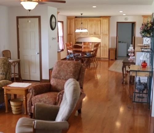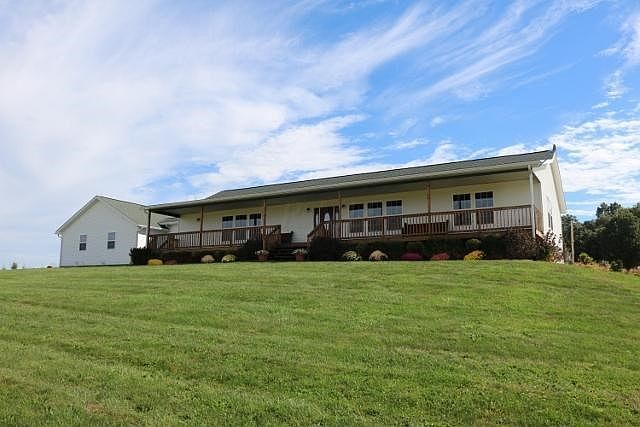 This quality built, ranch style house features plenty of beautiful, custom made hickory cabinets in a dynamic kitchen paradise. The large open floor plan flows not only from room to room but to the outside living spaces as well. Breathtaking panoramic views from the front porch which stretches the length of the home. Large master bedroom with solid wood floors. Main floor laundry, enclosed breezeway, over-sized attached 2 car garage is clean as a pin. Finished lower level with walkout hosts an extremely large (46x26) family room with wood burning stove, two additional bedrooms and lots of storage area.Quality construction includes 2x6 walls, extra insulation, solid wood floors. Additional Acreage Available.