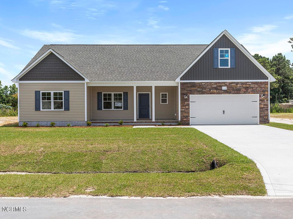 MOVE IN READY! The Meadow plan by Atlantic Construction is the one story layout you've been looking for on nearly 2 acres! The open living room has a vaulted ceiling, dining area, and kitchen with a pantry. The owners suite is on the opposite side of the home as the other bedrooms with a tray ceiling, double vanity sinks, not one, but TWO closets, and a separate tub and shower. The other two bedrooms share a bath room and the bonus room upstairs could be the home office, rec room, or playroom you need. Situated 7 miles from the stoplight in Holly Ridge, this home is a short drive to Topsail Island beaches, shopping, MCAS New River & Camp Lejeune. There are deed restrictions but no HOA, this home is move in ready, so call a Realtor today for more info!
