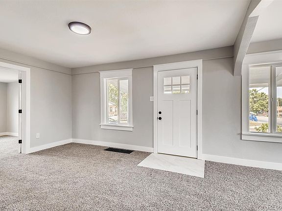Come see the COMPLETE remodel of this desirable ranch home on a LARGE CORNER LOT. You feel right at home from the moment you step inside. The kitchen has new oversized white shaker cabinets, brand NEW stainless steel appliances, slab quartz countertops, custom tile, & trim. The bedrooms and bathroom are remodeled to include new CUSTOM tile, shower, modern vanity, & fixtures. New flooring runs throughout the home as well. The outside boasts all-new exterior siding and gutters. Don't throw away your money. Make sure you keep maintenance costs and utility bills low with all new windows, and furnace. Save additional money on energy & future costs with an all-new roof. The backyard is both incredibly spacious & PRIVATE. It includes a brand new 6-foot privacy fence. You can relax out back or under your new front porch decking adding to this home's tremendous curb appeal. Want more? It's also great to have laundry on site. Alley access, corner lot, and permitted for a carport make parking a synch. This is an exceptional VALUE in an exceptional community. Quick closing & quick move in to accommodate an eager buyer. Enjoy the best of Colorado lifestyle with easy access to the Rocky Mountain National Park, lakes & outdoor activities. Come check it out & make it yours!