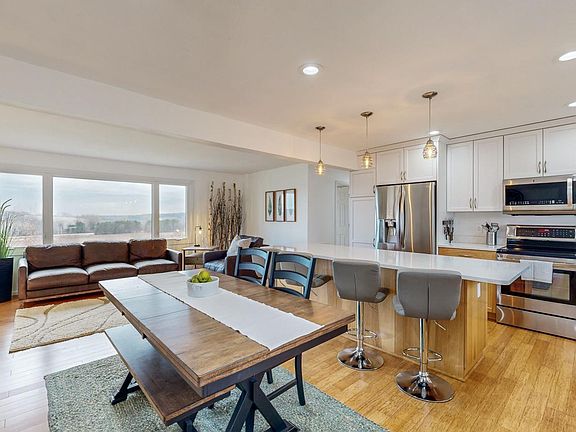 This 3 bed 2 bath Rochester charmer with country vibes is a must see!! Nestled in the beautiful rolling hills of a highly desired SW Rochester location, just minutes from downtown and still within the sought after Bryon school district. Come and experience a home that boast an updated architectural designed kitchen with custom two toned ceiling height cabinetry, stainless steel appliances, beautiful bamboo floors and high end white quartz throughout! The main floor offers an open concept with eat in kitchen, 2 beds, full bath and picture window with views for days!! Did I mention views...these panoramic views are what early morning coffee lovers dream of! The private covered rear patio and custom retaining wall, both help contribute to an already impressive outdoor ambience! The lower level consist of a cozy family room with gas burning fireplace, a recently remodeled lower level bathroom, and two separate storage rooms for all those holiday decorations! Don't miss this opportunity!