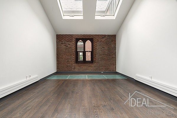 1,100 sf of usable living space in a gorgeous, flowing layout spread over 3 floors. At the top level, design your king size master bedroom beneath soaring ceilings. More than ample closet space with ELFA system provided for maximum storage flexibility. The en-suite bathroom hosts a double vanity with 2 wash basins, finished to the standards of 5 star luxury hotels. The parlor floor has 2 big skylights that bring even more aesthetic character to a gently sloping, lofty ceiling. Sun pours through skylights and ubiquitous windows, filtering down to the lower level through a beautiful, structural smoked-glass addition to the flooring This living space is completed by a large galley kitchen, equipped with top-of-the-line appliances, and a gigantic double-door closet. ELFA system included. On the lowest level, the spacious recreation/office/study area benefits from the soft glow of natural light through the glass ceiling panels. A half bathroom here completes the flow and convenience of this residence. This unique home is part of a converted Gothic Revival Cathedral, meticulously renovated to offer a treat to come home to every day! With a number of amenities throughout the building, living is easy: Fitness facilities, NEST remote home management systems High efficiency DAIKIN central air State of the art RUNDEL heating system Designer bathrooms, handmade European sinks, Italian tiles, Kohler fixtures Top-of-the-line kitchen appliances Complimentary laundry Bicycle storage Beautifully landscaped garden space. With the feeling of living in an urban oasis, it may be difficult to leave home. If you do manage to step out, transportation is a breeze with a number of subway stations in the immediate vicinity such as the Dekalb Avenue station and the Atlantic-Barclays subway hub. Live in one of the most well known and quintessential of Brooklyn neighborhoods Fort Greene! Culture & neighborhood amenities abound with the Brooklyn Academy of Music, Brooklyn Flea, to Dekalb, Fulton & Myrtle Avenue commercial corridors that have a number of fantastic restaurants & community stores to offer. Fort Greene Park is stone's throw away, offering wonderful green space & a weekend farmers market.... Come and take a look at what an awe-inspiring home really looks like.