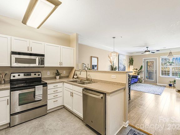 Discover this bright and inviting 3 bedroom 2 bathroom South Asheville condo. Positioned on the desirable top floor, this south-facing condo boasts an open floor plan, abundant natural light, and 9 ft ceilings. Convenient to downtown, West Asheville, the Blue Ridge Parkway, and easy interstate access. Enjoy the sun-drenched open living area that seamlessly connects to a private balcony featuring beautiful views, privacy, and a storage closet. The primary suite includes a private en-suite full bath and walk-in closet. The community offers serene walking trails, picnic areas, and grilling spots surrounded by mature trees. This peaceful, owner-occupied community is pet-friendly, and most utilities, except electricity, are covered by the HOA dues. Relish in breathtaking views from the covered balcony, perfect for savoring your morning coffee or evening drinks. Experience peace with no neighbors above you. Move in ready with fresh paint and new updates. So many reasons to make it yours!