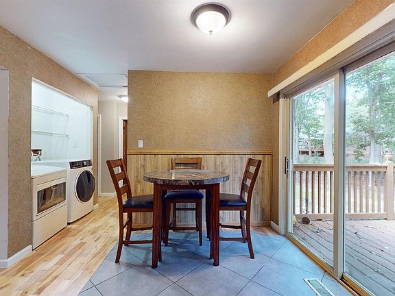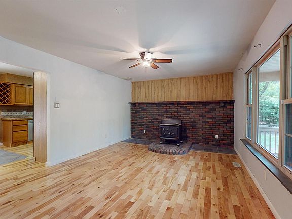 3 bedroom one bath ranch style house featuring: spacious living room with hardwood flooring, wood burning stove, eat in kitchen with stainless steel appliances, three bedrooms, large primary bedroom, one full bath, one car attached garage, rear deck overlooking the private backyard Large front and rear yard