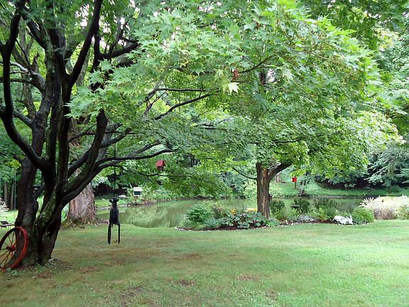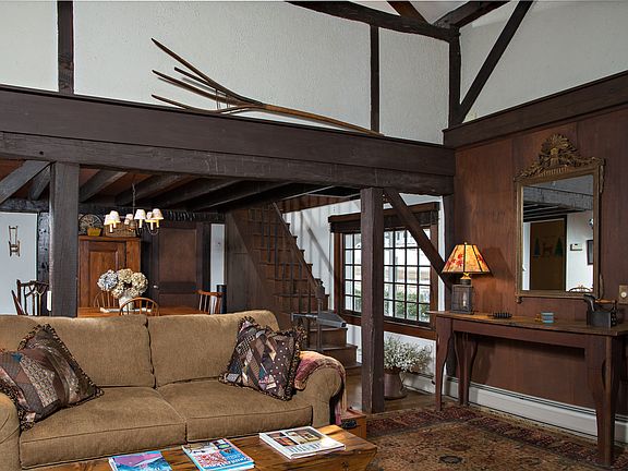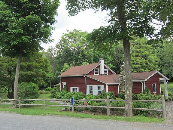 1870 RENOVATED BARN. A little gem of a property in a lovely 3.6 acre setting bordered by mature tress with a large Koi stocked spring fed pond. The open plan Living /Dining Room has a cathedral ceiling with exposed beams and a charming loft sleeping area. The Master Bedroom has a working fireplace. There are two full baths. The office could also be used as a gym or studio in addition to the room attached to the two car garage which could be used as a studio or craft area. The heated all season Sunroom and the Kitchen open on to the attractive paved patio and overlook this picture perfect setting. An ideal retreat less than 90 minutes from Manhattan.