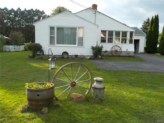 Looking to down size ?? Here is a fantastic ranch home with many updates. NEW ROOF just installed. 2 bedrooms with room for a 3rd and full dry basement for more added living space and 1 bath. The kitchen was totally renovated with new sliding door overlooking the rear yard and deck. This traditional ranch with a wonderful enclosed front porch and huge 28x38 deck with a new pool and 5 person hot tub will give you the great entertaining space for your guests. There is a wood fireplace with custom stone work with a massive 20x21 living room. The electric is 150 circuit breakers and main heat is a oil furnace. There are only 2 taxes Total $2707 before the star program. The home has Ilion Power and natural gas is available. Call today ranch homes don't last.....