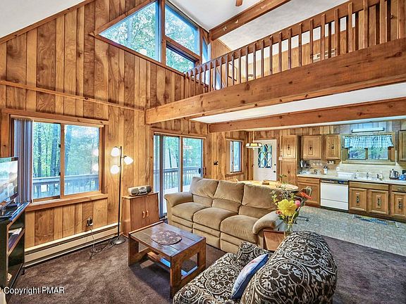 Very well maintained country chalet. Offers light and bright living area with brick fireplace and vaulted ceilings, eat in kitchen with tons of cabinets, first floor primary bedroom with large private whirlpool tub, two full baths, large loft area (could be used as 3rd bedroom), second bedroom with exposed beams. Enjoy the wooded lot from the large screen porch or huge front deck. Maintence free vinyl exterior. All located in ammenity filled community.