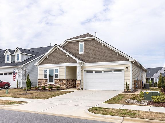 Beautiful two-bedroom RANCH with an additional versatile space perfect for an office or guest room. Enjoy barrier-free wood floors throughout, private primary retreat with tray ceiling and an abundance of storage and closet space. The secondary bath has a tiled shower with niches and quartz counters. You'll love the large great room with surround sound and natural gas fireplace. The kitchen includes sleek quartz counters, double ovens, and a butler pantry with sink and wine refrigerator. There is an oversized walk-in closet for plenty of climate-controlled storage. This lovely home has over $100,000 builder upgrades plus $20,000 in post-construction upgrades. Some of the many features include a Guardian coated floors in the garage and 3-season porch, CPI security system, extensive landscaping and preventative draining control, brick pavers in the backyard, 3-season back porch with fireplace and television hookups, dedicated concrete pad and fence to conceal trash cans, upgraded cement pad for HVAC equipment, medicine cabinets in bathrooms, exterior wired for cameras, and so much more! Easy maintenance - HOA maintains landscaping! Neighborhood amenities include a dog park, gathering place with wifi, fit park, gazebo, and fire pit. Fantastic Fuquay location off Judd Pkwy near shopping, restaurants, and moments from the library. Be sure to view the interactive virtual tour!