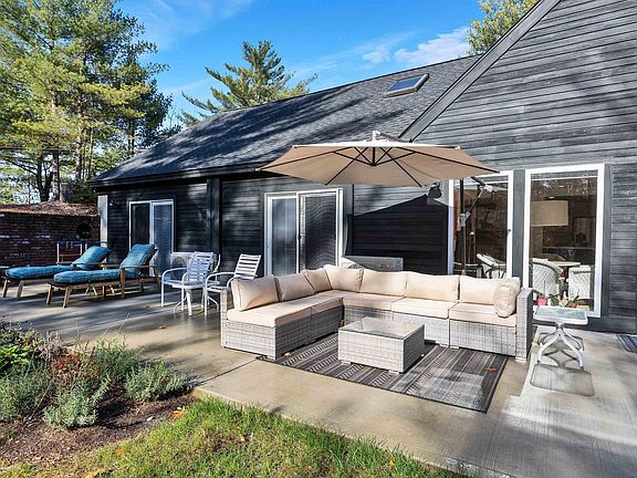 This delightful recently renovated large country retreat, set down a long gravel drive in a bucolic woodland setting offering much privacy and a broad sunset ridge view of surrounding hills, is this large live on the level home with many excitng modern appurtenances and design which allows for zero-step main level living. Large gourmet kitchen opens to great room with dining and entertaining space, which opens on south facing terrace, bedroom wing includes two bedrooms and two baths, including owner's suite. Upstairs is beamed ceiling family room which opens on the upper deck and seating area with views, two additional bedrooms,kitchette, hall bath and additional adaptable room with large storage closet. Two oversized garages, one attached and one detached, along with utility room and laundry complete the picture. New state approved septic system and private drilled well. A rare find and delight to see!