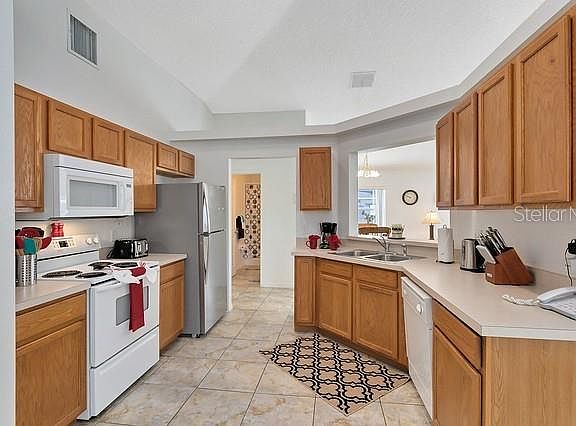 Charming, well cared for 3 Bedroom home with POOL in the GORGEOUS Florida Pines community with mature pine TREES throughout. Spacious Kitchen with breakfast nook and LARGE PANTRY and bar overlooking Living Room. Master Bedroom has privacy from the other bedrooms. LOW HOA Dues include community playground nestled among mature Pine Trees. Close to Grocery, Restaurants, Shopping, Movie Theater, Schools, Public Park, Golf, Champions Gate, I-4, Hwy 192 and Theme Parks. NEW Carrier AC System, NEW Refrigerator, NEW Washer & Dryer, NEW Landscaping. Furnishings, Decor and Living Room TV included. Great price and opportunity!