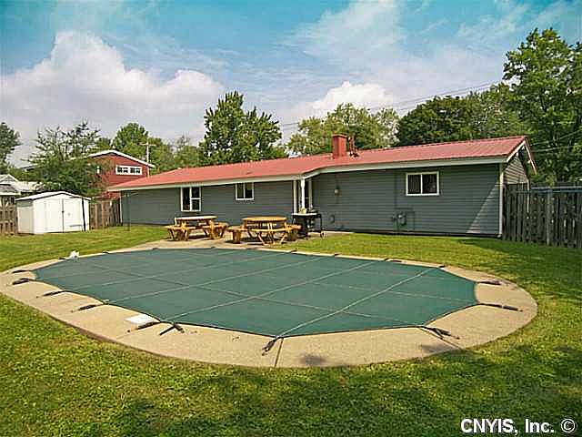 ** You will be Surprised at the size of this Home ** H-U-G-E Great room that can handle large furniture. Vaulted Ceilings! The Great room includes plenty of Space for Dining room Furniture, too. Ample Kitchen cabinet Storage. The Seller currently has a washer & dryer hookup in the kitchen. * Updated Baths. Updated Windows. Updated Metal roof. Updated Siding. Updated Pool Pump. Updated Central Air Unit.* It is All In Good Shape. Backyard has a Great Layout, the Pool Plus Backyard Space and 2 Large Storage Sheds. Updated Extra Wide Driveway. Total Taxes with a Basic STAR Exemption Just $3,932