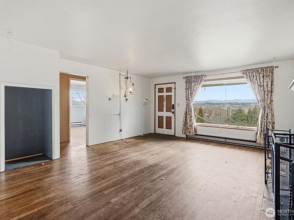 Opportunity knocks in North Everett. This 3-bed, 1-bath home sits on a 6,970 sq ft lot and offers a rare chance for a first-time buyer or visionary owner to build instant sweat equity. The home is livable and features hardwood and custom stone floors, a wood-burning fireplace, bonus storage space with flexibility for future use, a newer roof, and a full solar package. Enjoy east-facing territorial views toward the Cascades and Mount Baker, plus a front deck and rear patio ideal for outdoor living. Off-street parking for up to four vehicles. Conveniently located near Legion Golf Course, Everett Community College, and neighborhood amenities. Seller inspection provided, professionally cleaned, and ready for you to move in or get to work. Possible DADU potential – buyer to verify.