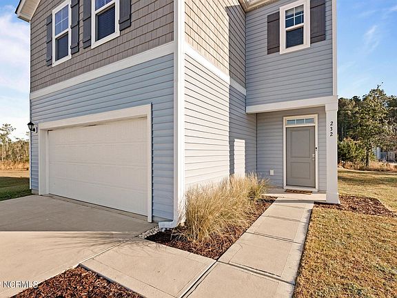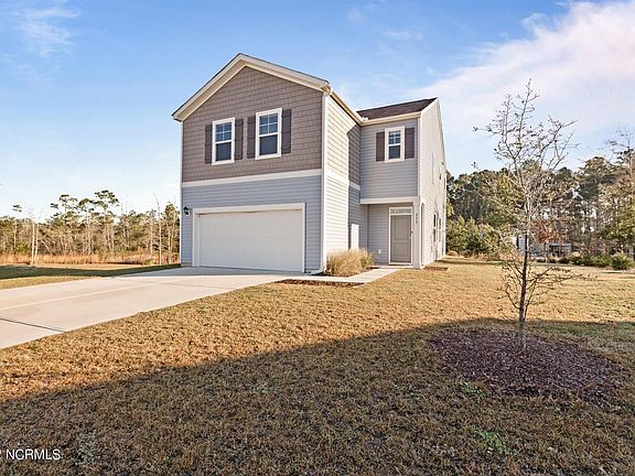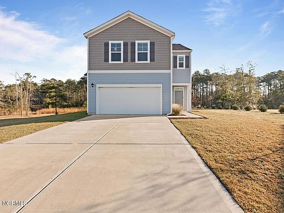 This meticulously maintained property is just like new but without the wait for a new construction home! The River East subdivision is perfect for the coastal lifestyle with only a short drive to the Emerald Isle bridge, downtown Swansboro, and the new public boat ramp coming soon. Additionally, this home is conveniently located only a short commute to both MCB Camp Lejeune and MCAS Cherry Point. This home features 4 bedrooms, 2.5 bathrooms, over 2100 sq feet of living space, a cul-de-sac lot, AND over 3/4 acres of land! Walking into the first floor you will be welcomed by natural light streaming through the windows, an open floor plan with low maintenance LVP floors, and a spacious kitchen that flows right into the living and dining rooms. Experience a chef's dream with granite countertops, a large island with room for barstools, and ample cabinet and pantry space throughout the kitchen. Upstairs you will find all four bedrooms. The master bedroom comes with a walk-in closet and a spacious master bathroom with soaking tub and a large walk-in shower. Other features include an upgraded patio and retaining wall installed in 2021, and a finished garage with epoxied floor. Move-in ready and waiting for you to make it your home. Schedule your private showing today!