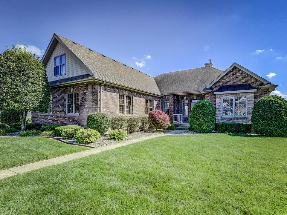 TRULY UNIQUE, CUSTOM DESIGNED 4 bdrm/4.5 bath, ALL BRICK, sprawling Ranch with 2nd floor bonus suite! Oak floors flow from the Foyer into the Great Room with fireplace, flanked by cherry cabinetry w/wet bar, on into the formal Dining Rm which features wainscot detail, and to the perfect Kitchen for entertaining with granite countertops, stainless appliances, large center island, wine fridge an dining area that opens to cozy sitting area. The split bedroom floor plan includes Master Suite w/tray ceiling, luxury bath, & walk-in closet & two additional bedrooms off the front of the home that are conveniently located near second full bath. A wonderful 3 Season room, main level laundry & guest half bath complete the first floor. Upper level has a large bedroom suite with full bath-ideal for guest, in-laws, or teens! Full basement w/high ceilings offers Recreation room, bath, hobby area, egress window, great storage. A 3.5 car side load garage is finished and heated, Schedule a time to see!