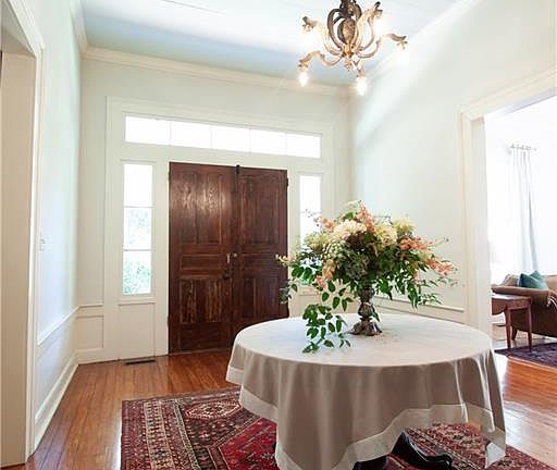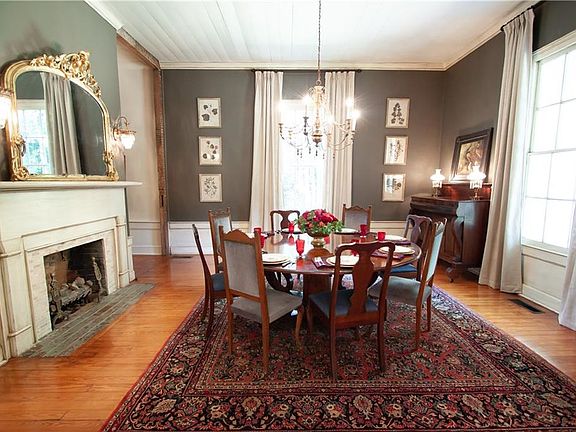 Water Oak Manor, an 1840's classical cottage renovated in early 2000's. Enter through wide, double doors into high-ceiling halls, where tall doorways provide access to the living quarters of the home. Featuring a large gourmet kitchen opening into the south-facing, light-filled den, overlooking the long-standing water oak tree and landscaped grounds of the manor. Entertain your guests in the kitchen, the formal dining room, or the formal living room. In addition to the main house, a smaller home with historic charm provides space for additional guests and storage. A study has been added to one end of the hall, complete with built in shelves. Original heart pine flooring warms the interior of almost every room. With craftsman-like skills, another home from the same period was moved to the site and added to the back in 2001, resulting in a home with 5 bedrooms and 3 full bathrooms. In addition to the main house, a smaller home with historic charm is on site.