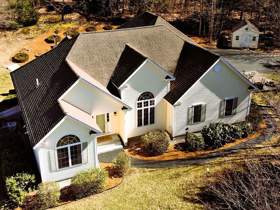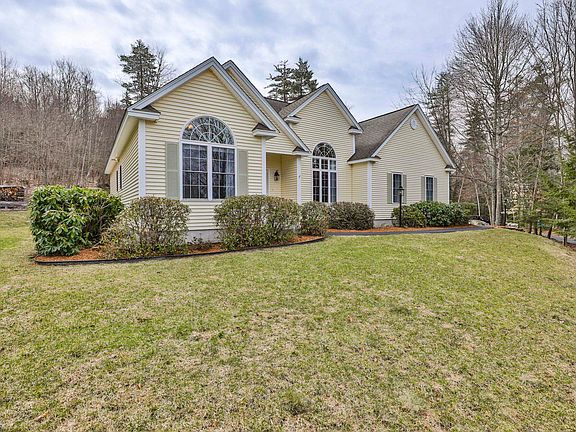 Pristine contemporary Hip-Roof Ranch nestled on 16+ private acres in New Boston at the base of Mt Uncanoonuc North. This home has so much to offer! …the comfort of single-level living, large windows for plenty of natural light, warm oak floors, open living room with vaulted ceilings and cozy wood stove. The Hickory kitchen has granite counters, breakfast bar, eat-in nook, & large pantry closet and built-in Desk. Huge Primary Bedroom suite includes jet tub, private water closet, and quartz counters The well-placed 3-season sunroom overlooks patio/deck and beautifully landscaped yard. There’s plenty of room for your toys, with a shed and 3 car garage! Open basement has generous height, and automatic stand-by home generator for uninterrupted power. Make this tranquil retreat your own paradise. (14+- acres in current use) Showings Delayed till Open House Saturday April 20th 11-1