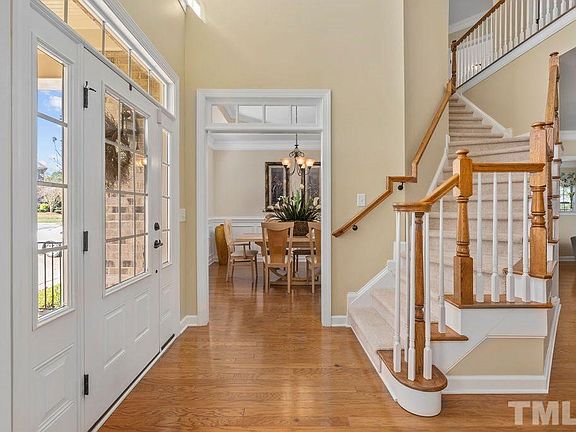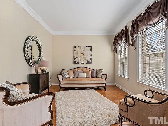 Brick front estate nestled on a cul-de-sac lot in a highly sought after pool community. Loads of natural light, two piece crown molding throughout 1st floor, formal dining & living room/office, family room w/gas log FP separating BI's & creating a cozy place to relax, gourmet kitchen w/double ovens, gas cooktop, & WI pantry. 1st fl. bedroom w/adjacent full bath ideal for guests. All second floor bedrooms connect to a bath. Bonus room. Screened porch w/deck. Wooded views. Close to 540, shopping & dining.