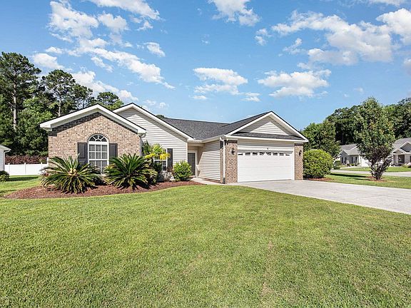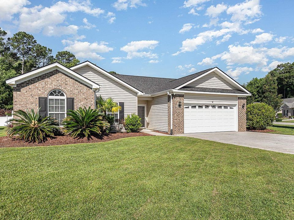 Meticulously maintained three-bedroom two bath residence on a corner lot in the waterway community of Lawson's Landing! This home has been upgraded throughout with granite counters and both wood and tile floors. New roof installed in 2020 and air conditioning in 2024! The primary bedroom has double trey ceilings with crown molding, recessed lighting, tiled bath with a granite double vanity, upgraded shower with glass door and large walk-in closet. The kitchen features granite counters and black stainless-steel refrigerator. The exterior of this corner lot has a finished garage with the capacity for 6 vehicles, large fully fenced yard with a patio and mature palms. Lawsons Landing is in the award winning Socastee school district. The pool and hot tub area has been recently resurfaced. The community also features a boat launch on the intracoastal waterway and day dock. This desirable location is minutes to the beach, Market Commons, Broadway at the Beach, Myrtle Beach State Park, Myrtle Beach International Airport, world class golf and the Murrells Inlet Marshwalk! Contact your agent to schedule a showing today!