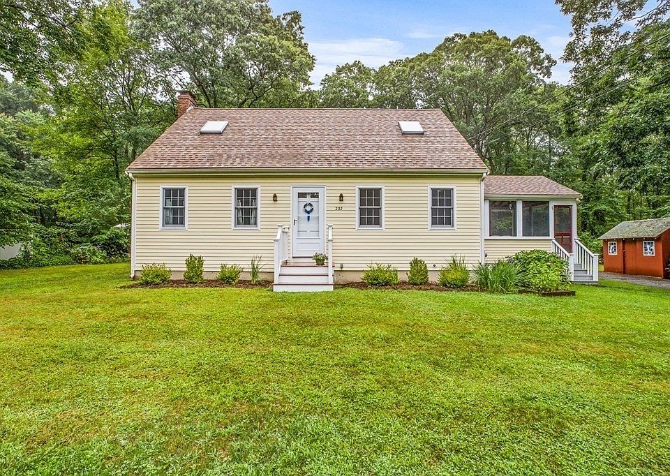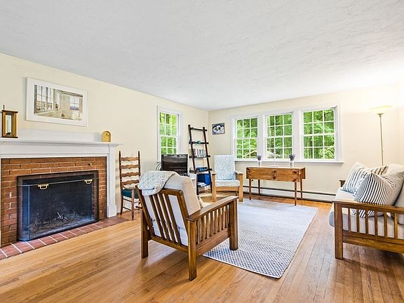 Picture perfect Cape style home on a pretty, park like parcel in convenient Scituate location. Delightful interior with sunlit rooms and hardwood floors through much of the home. Front to back living room with fireplace allows ample room for two seating areas. The dining room with two closets currently functions as a fantastic work from home office or could be wonderful as a dining room/playroom/sitting room. Cheerful kitchen with white cabinetry, good work space, a double sink and windows overlooking the backyard help to make meal prep a joy. Enjoy meals and entertaining on the screened in porch during warmer months. On the second level are three dreamy bedrooms, two have skylights including the front to back primary bedroom. Full basement with laundry and work area. This lovely home is convenient to harbor, beach, schools and train - easy lifestyle - move in relax and enjoy!