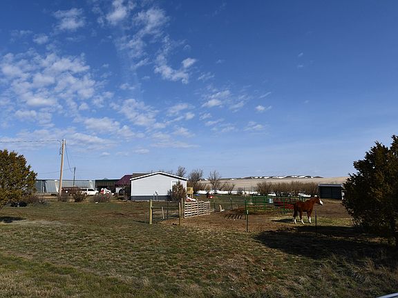 Private and surrounded by beauty, this country property is located near the Big Sheep Mountains in eastern Montana. This property is on 2.813 acres and features 3 beds, 2 baths with a detached double garage and a pole barn. This manufactured home was built in 2007 and has been de-titled and sits on blocks on a concrete pad and is tied down. The house features, vaulted ceilings, and a spacious kitchen with all appliances included. The kitchen has a large island with room for stools, a window overlooking the yard, and room for a table near the glass French doors, which lead to the deck. The master bedroom has its own bathroom with his and her own vanity and sink, a shower, lots of cupboard space, and plenty of natural sunlight from the skylight. Other improvements include new fiber cement siding and trim, two new decks, a fenced field and a walk-in pantry. There is a detached garage with overhead, insulated, electric doors. There is a private water well, along with its own propane. Electricity is with McCone, Internet Mid-rivers, and or Starlink. New steel roof in 2022. All figures are +/- and all information provided is deemed reliable but is not guaranteed and should be independently verified.