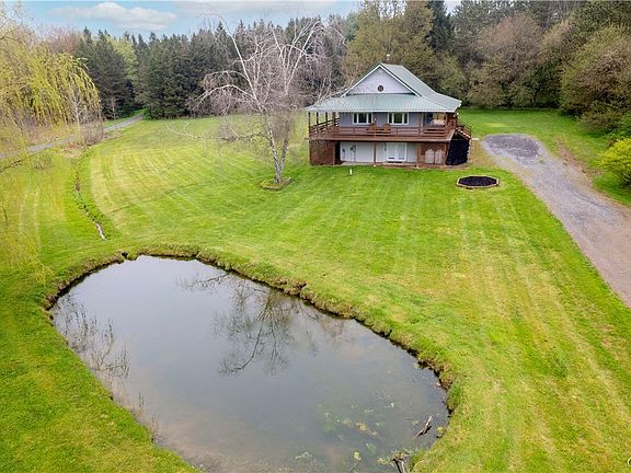 Welcome to this slice of heaven that has endless possibilities both inside and out! Out enough to have your privacy and quiet, but close enough to all the amenities that you could need. Enter into a home that allows you to enjoy the best views from any angle on the wrap around porch, through the large windows, and even from the top with cathedral ceilings. Bedroom on main and second floor with plenty of space. In the partially finished walkout basement find another room for a bar or enclose for a bedroom. Outdoors you'll find a wonderful oasis that allows for all the fun to be had! Basketball court, shed, hook ups for a pool, wrap around deck read for a hot tub, play set, pond to fish in, a stream to enjoy, and enough space to run around or relax in with your wooded lot for privacy. See this home before it is gone!
