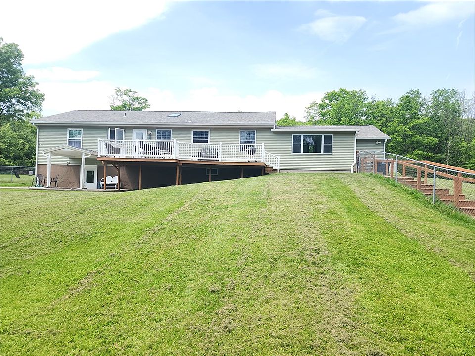 Welcome home! 3 bedroom 1.5 bathroom ranch style home with full walk out basement into the fenced in back yard. Large livingroom with lots of natural light open to the dinning room, enter into the kitchen with plenty of cabinet space, breakfast nook, stainless steel appliances and entry to back deck to enjoy your peaceful view! 3 nice size bedrooms with great closet space. 2 car garage attached, entry into mudroom and/or sitting room. basement has space for gym, kids play area, livingroom, office/game room, half bathroom and laundry room. Nice side yard with chicken coop, and small barn and shed. Conviently located, dont miss your chance to call this your home sweet home!