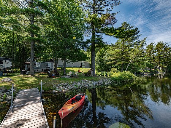 Experience waterfront serenity at its finest. Discover the rare opportunity to own 375 feet of pristine waterfront on Dam Pond, offering breathtaking views and a picturesque backyard setting. This 2018 mobile home, elegantly positioned on a solid cement slab, provides an ideal sanctuary with two bedrooms and captivating water views. Enjoy the tranquility of bass fishing, canoeing, kayaking, and year-round waterfront living just steps from your doorstep. Additional features include a one-car garage and a small guest bunkhouse. Conveniently located near Routes 202 and 95, only 10 minutes from Augusta and Maine General Hospital, this residence offers easy access to shopping and amenities while maintaining a secluded feel. With exclusive access to Dam Pond, you'll savor private sunset views that will leave you eager for each evening's twilight. Indulge in the pleasures of spring-fed waters teeming with bass, accessible from your private dock. Don't miss the chance to make this idyllic waterfront retreat your own.