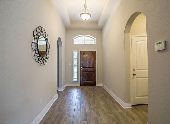 Beautiful stone front & solid wood door opens to a quaint, warm & welcoming interior. Wood-look ceramic tile throughout entry & living areas provide a modern, easy to maintain home. Spacious windows in master bedroom & study invite peaceful views of greenbelt. Covered patio facing the east promises great BBQs. This home is the complete package. June move in.