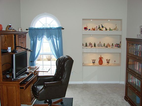 For the discerning buyer seeking a bit more elbow room than you can find in Lexington at this price, this like new ranch home was intentionally built for a true one-step living! The spacious interior features a woodburning fireplace in the great room and an open kitchen with ceramic tiled dining area. Popular split bedroom floor plan also includes a generously proportioned tile laundry room and a large master bedroom and bath suite with separate tub and shower and 2 large walk-in closets. A lovely office on the front of the home could easily be converted to a fourth bedroom by a new owner. At present, this space works beautifully as bright and cheerful office with its own custom-built, lighted shelving. This home is truly handicap-accessible with extra-wide doorways and a covered patio leading directly to the backyard with no steps. Here you'll find the space you want on an oversized lot backing to farmland. Truly single floor living at its best -- this is my favorite ranch!