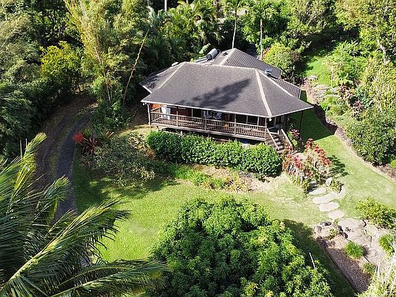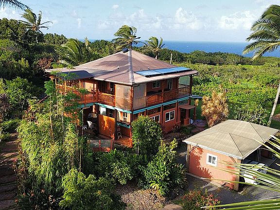 232 Door of Faith Rd, hidden away down a long private driveway, is 1.25 Acres of beautifully landscaped property with an unobstructed ocean view, a pond, 4 beautiful structures, 40+/- fruit trees , and a wide variety of beautiful tropical flowers. Located just a mile off Hana Hwy, it sits at the portal on the road to Hana with all the treasures that the North Shore offers: wonderful places to hike, mountain bike, explore waterfalls, grow delicious food, and enjoy the bounty unique to Maui. There is soul soothing quiet at night so you hear the soft breezes, the rain and the crickets. In the morning the sweet sound of birds fill the air.