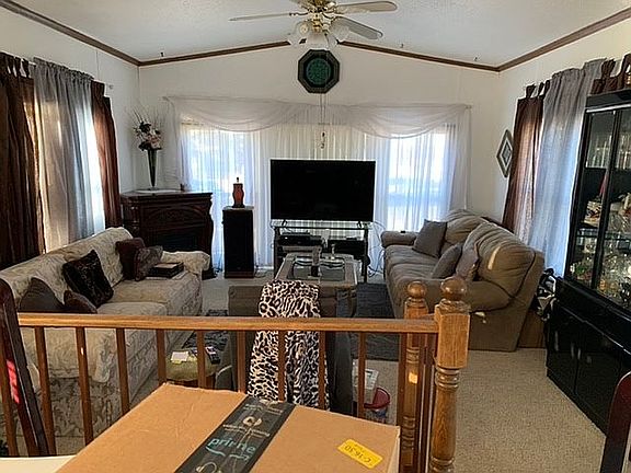 A home with a lot of windows,large enclosed front deck with gate.French doors open to a large living room ,large kitchen and dining room with a lot of cupboards large 5 piece bathroom with soaking tub.large master bedroom,2 other bedrooms and another bathroom. Appliances included washer dryer,swamp cooler, stove,fridge ,dishwasher and garbage disposal