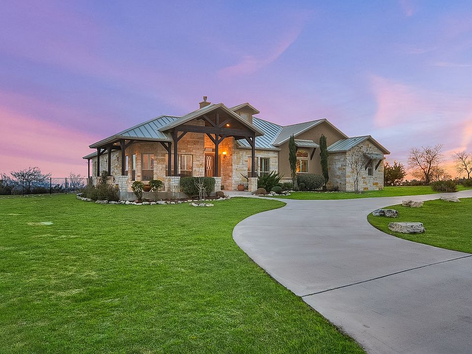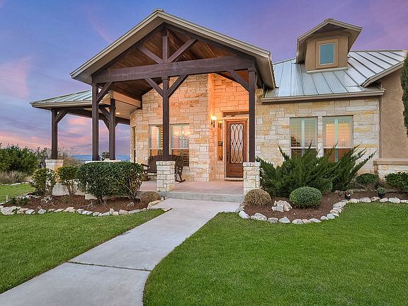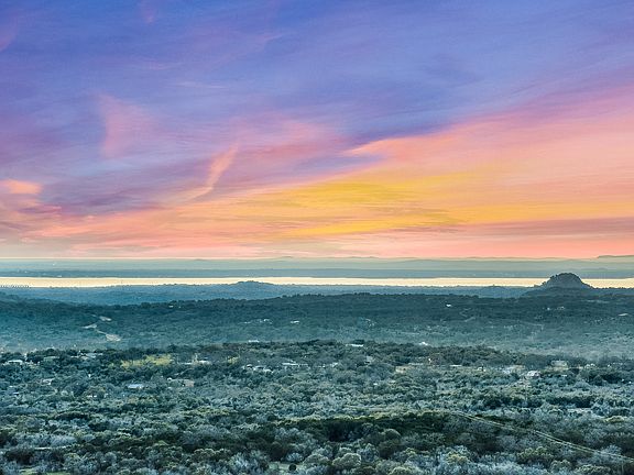 Views, views, amazing views! Priceless views! Come watch the sunset over Lake Buchanan and Inks Lake, and the gorgeous panorama of tree-covered hills. Get comfortable in the custom designed seating area built specially to enjoy a glass of wine while watching the sunset. This lovely 4 bedroom, 3 bath home on 2.6 acres is in the premier Hill Country neighborhood known for its exclusive housing and spectacular views. Rare combination of a level backyard overlooking panoramic views.