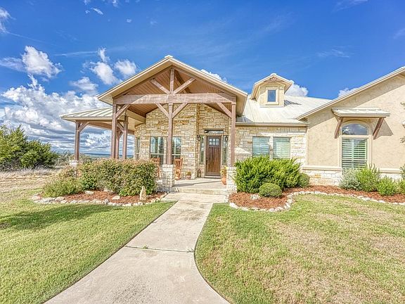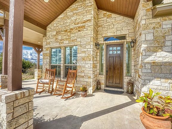 Magnificent Hill Country Views! Located in the highly desirable gated community of Eagles Nest, this gorgeous home is situated on 2.6 acres and features spectacular panoramic views of Lake Buchanan, Inks Lake, Falkenstein's Castle, and the Hill Country from high atop Eagle Ridge. This elegant four-bedroom three bath is complete with stone fireplace, 10-foot coffered ceilings, formal dining room, plantation shutters, and beautiful wood floors throughout. The spacious kitchen features granite countertops, stainless steel appliances, island, butler's pantry, and floor to ceiling stone accents. The lovely ensuite features a spa tub, large glass shower, dual sinks, large walk-in closet, and windows showcasing the dramatic hill country view. This impressive home is perfect for entertaining both indoors and out. A circle drive for easy access to the home, a comfortable wrap around front porch for watching the hill country sunrise, as well as a three-car garage with room to spare. The covered rear patio is perfect for taking in spectacular sunsets, grilling, and entertaining guests. A wrought iron fenced backyard is a perfect place for pets and children to play. There is even a secluded seating area ideal for that romantic moment with views that go on forever. It is the absolute best of quiet hill country living close to the city. This stunningly beautiful home, complete with breathtaking panoramic views, comfortable living, and fantastic entertaining opportunities, awaits you - come see it today!
