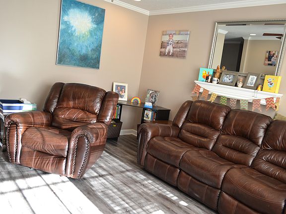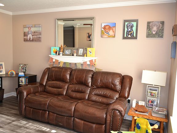 A MUST SEE...do not miss your opportunity to own this beautiful 3 bedroom-1.5 bath brick ranch style home, located in the sought-after Bullitt County neighborhood of Hunters Hollow. Convenient to shopping, interstates and schools. This lovely home, is move-in condition, featuring life/waterproof vinyl planking in the kitchen, living room, and hall, ceramic tile in the two bathrooms, and carpet in the bedrooms. The large eat-in kitchen features white appliances (smooth top electric stove, refrigerator, dishwasher and micro-hood) all of which will remain. The home has been painted with neutral colors with crown molding and all the interior doors have been replaced. The exterior of the home is maintenance free with a newer roof. The backyard features a large deck, fully fenced yard, 2 car