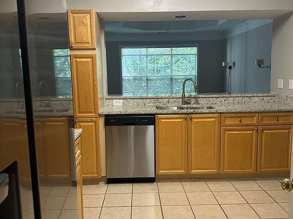 Surprisingly large upper floor, 3-bedroom, 3 full bathroom condo in Gated community. A delightful two-way fireplace separates two large multi-functional rooms (could be your typical living/dining or living/office or whatever you like), one with built-in storage. A large shaded patio is accessible from both the living spaces and is suitable for multiple outdoor areas. The kitchen and laundry feature new appliances* and a clear view into the living space. Each bedroom has its own bathroom, making it ideal for any family or roommate configuration. The primary suite features two walk-in closets, a separate tub and shower, and a double vanity. The secondary bedroom features an updated shower and a walk-in closet. The third room features a standard tub/shower combination for those who require it. As for utilities, everything is electric, which means lower energy bills for you. Water and trash are included. A two-car garage with plenty of storage makes privacy and daily living a breeze. And, if you prefer public transportation, the bus is conveniently located right outside the gate. Target, Walmart, Aldi, and Kroger are all within walking distance. The community amenities are unmatched and include walking trails, pet amenities, a car wash, a swimming pool, a clubhouse with community rooms available for reservation, a gym, a full kitchen, and a billiards room, all included in the HOA fees. Pets under 25lb with a deposit and rent. No smoking inside. *Dishwasher, Washer, and Dryer