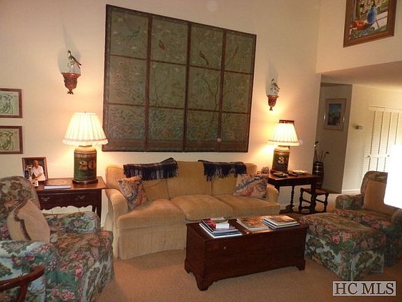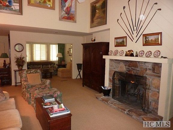 Great upper level unit in prestigious Highlands Country Club overlooking the #1 fairway. Walk to the main clubhouse for dining and also walk to the fitness center, croquet courts and tennis courts. There are only several units available and this unit is in great condition. Enjoy the stone, wood burning fireplace and the great view of the golf course.