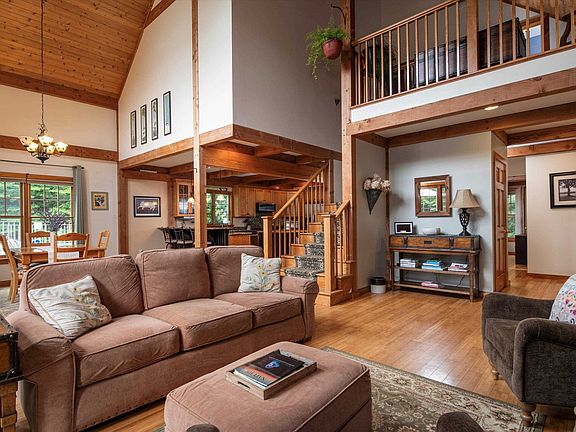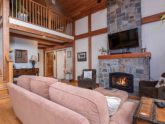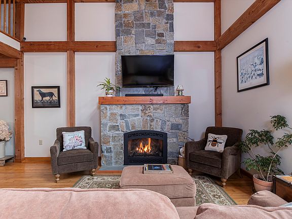 Welcome to your serene retreat nestled in a private location on 3.5 acres of beautifully landscaped grounds. This stunning timber frame home boasts a spacious deck that invites you to bask in the tranquility of nature. The two-car attached garage provides convenient access, while the inviting interior features magnificent beams, a cathedral ceiling, and warm wood flooring throughout. Gather around the cozy gas stone fireplace in the living area, or whip up delicious meals in the custom kitchen, complete with a breakfast bar and an island perfect for entertaining. Step outside to enjoy the small pond with a charming fountain, a refreshing pool, and a relaxing hot tub, all surrounded by a level yard ideal for outdoor activities. Just minutes from the breathtaking lake region and the renowned Okemo Mountain Resort, as well as the quaint shops and restaurants of Ludlow village, this exceptional property offers the perfect blend of comfort, style, and convenience. Don’t miss the opportunity to make this your dream home!