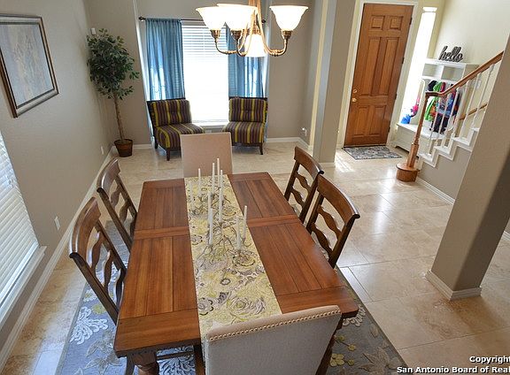 Elegant 2 sty entry featuring open flr plan & beautiful wood flooring. Enjoy 2 living areas, spacious living/dining rm combo. Huge kitchen w/island & brkfst bar ovrlooking lg family room w/cozy fireplace. Bright eat-in dining w/view of the gorgeous covered patio & private yard. Stunning master suite w/sitting area, walk in closet (w/window) & beautiful master bath- separate tub/shower, dbl vanity & plenty of space, Spacious secondary bedrooms. Great neighborhood of Deer Creek, Cibolo-close to everything.
