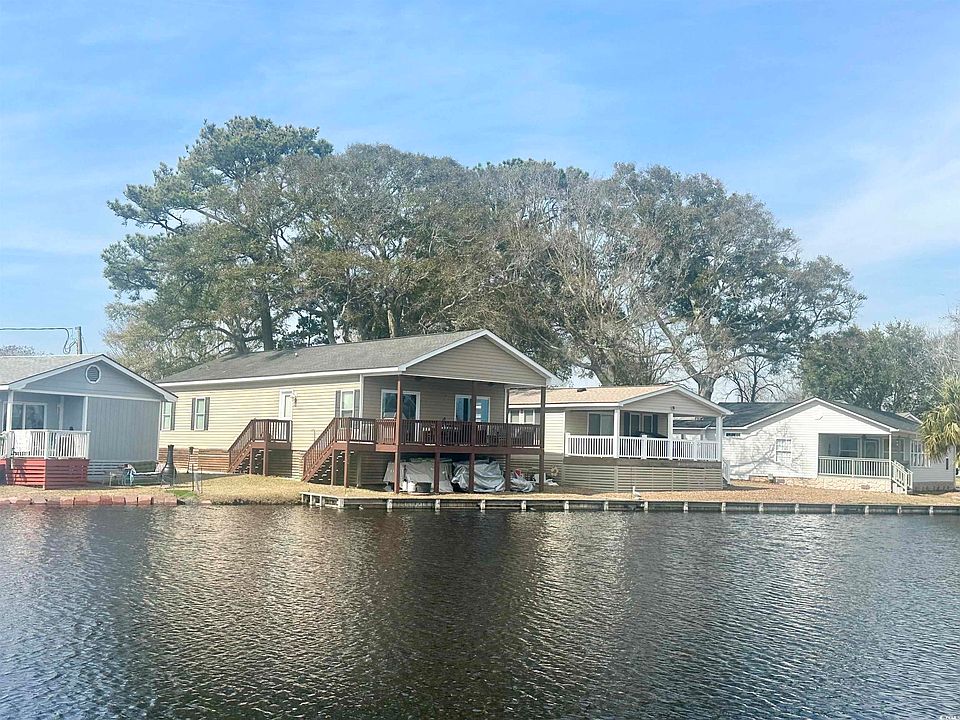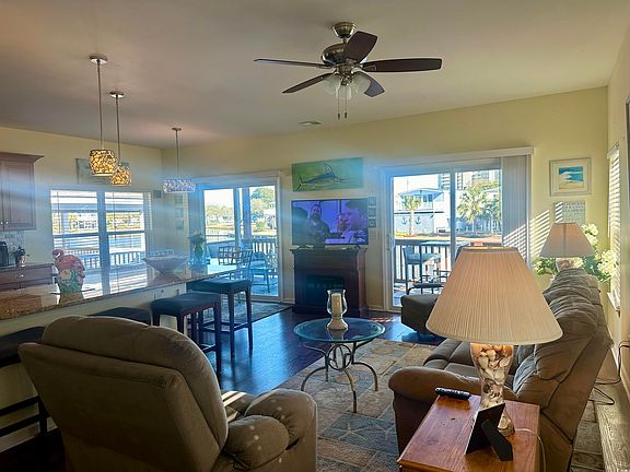 This completely remodeled turn key home is located in the highly sought after community of Oceanside Village, just east of 17. This open concept home is situated on the lake with breathtaking views from the 2 sets of double doors off the kitchen and living room. Featuring 3 spacious bedrooms, and 2 baths, with an abundance of light. The kitchen has granite countertops, tile backsplash, stainless steel appliances, a large center island and breakfast nook. The primary bedroom features an ensuite with granite counters and a walk in shower. You will love the deck off the main living area, perfect for entertaining, morning coffee or your favorite beverage Oceanside Village offers an array of amenities, including indoor/outdoor swimming pools, kids splash pad, playground, tennis, pickle ball, bocce ball, bark park, and much more. Private beachfront parking