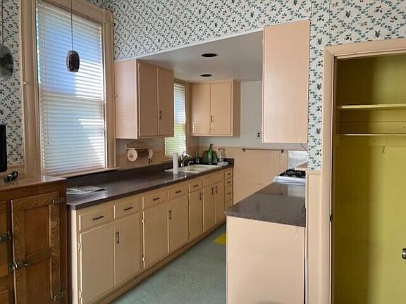 Great Opportunity here...2/3 bedrooms, bath brick home. 1/2 block from Bellevue's entertainment district. Open liv/din room with built in book shelves. Large eat in kitchen, nice fenced yard with a 2 car detached garage. Home needs some TLC, but endless possibilities await your personal touch.