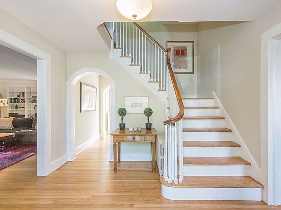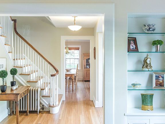 Classic center hall colonial on very desirable stretch of Forest Avenue! Spacious living room w/ wb fireplace & wall of custom buitl-ins leads to private open porch.. perfect for al fresco dining! Eat-in kitchen features center island w/seating at the limestone counter plus separate seating area overlooking picturesque yard w/ 2 patios and newer two car garage. Oversized master bedrm has renovated bath w/ walk-in shower & radiant heat. All 3.5 baths have been remodeled. Finished basement offers rec room & temperature controlled wine cellar. Four floors of comfortable living space! New gas furnace & h/w heater, zoned C/A, front & back sprinklers, tended iris gardens & more. Six minute walk to Forest Avenue School & to NYC bus, 15 minute walk to Walnut Street or hop on the jitney at the corner to GR train!