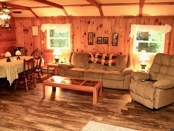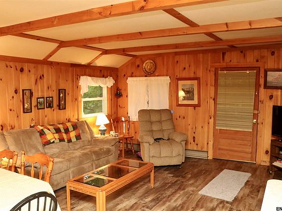 Enjoy the quiet of the Adirondacks in this cozy knotty pine camp with lake rights. New flooring and carpet throughout. This warm, comfortable seasonal camp offers three bedrooms, a great room and 2 bathrooms. Includes rights to community beach a block away. Enjoy entertaining and relaxing. Watch the hummingbirds on the deck or from the screened porch. Replacement windows. Private parking for 2 cars. Priced to sell.