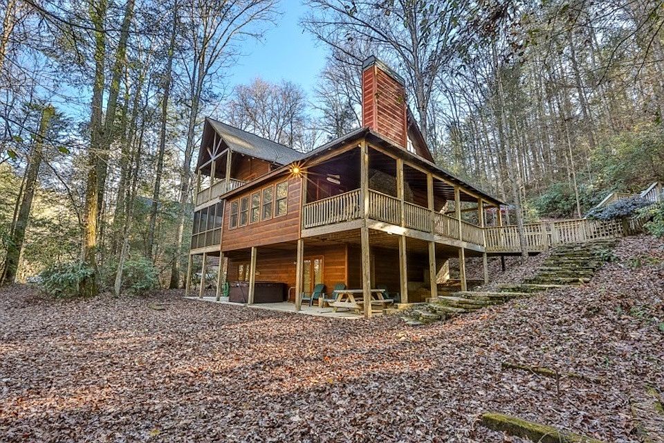 You won't want to leave once you arrive at this waterfront cabin! Over 131 feet of rushing waters can be enjoyed from almost anywhere on this property! Open the French Doors from the master to be lulled by the soothing sounds, roast marshmallows by the firepit in front of the water or rock on 1 of 3 decks to while away the hours. Truly a slice of heaven for all to enjoy. 2 fireplaces (1 outside), lrg great room that opens to dining/kitchen, master on main, spacious loft, partially finished terrace level with pool table, sitting/TV area and full bath. 2nd large terrace area is fantastic for storage or a future 4th bedroom. Inside a resort that offers swimming pools, tennis & basketball courts, putt-putt, fishing lake, and more - - this would be an incredible vacation rental property! Also comes with a home warranty that covers the appliances and hot tub!