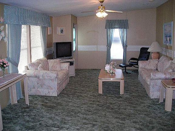 Lovely turnkey home with a view of a pond that wont last long. Large kitchen with newer vinyl flooring and breakfast nook that has window with view of a pond. Oversized LR/DR combo has built in stereo system. Lgr MBR suite has step in shower and walk in closets. There is a 10 x 18 Florida Room with view of a pond. Home also features A/C new in 2010, double driveway w/lg shed, and carport has tie downs. The golf cart is included. Over 700 homes available at http://www.fourstarhomes.com