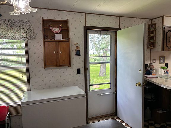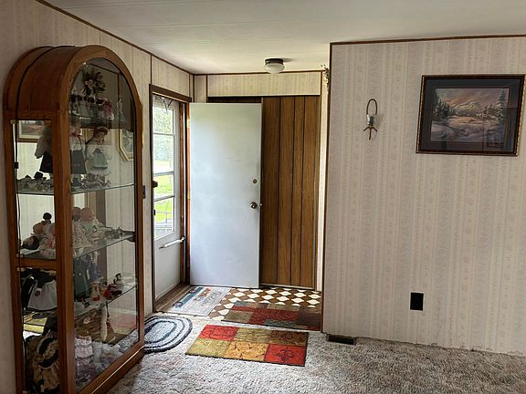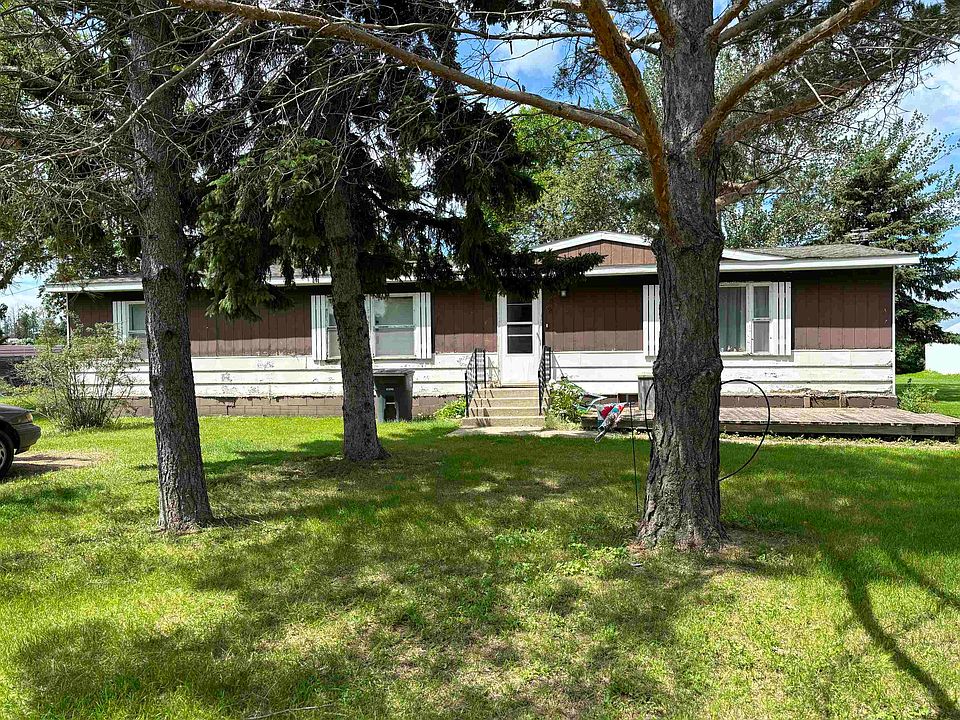Manufacture home sits on 3 city blocks, almost half acre, its a great lot, enough room for a garage or a shop. The manufactured home has 3 bedrooms, 2 full baths, also, an extra area off the kitchen for breakfast nook, exercise equipment, crafts, piano........ The yard is very private, lots of possibilities, great trees, and includes a 12x16 shed. The home is being sold 'as is', the home is livable, needs TLC.  The family is removing personal items.