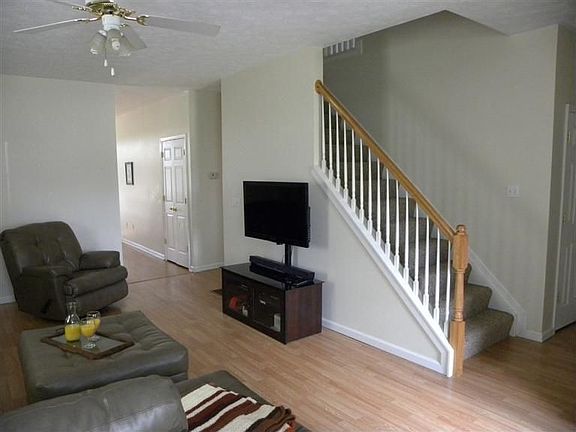 5 Bedrooms!!! + Bonus Room!: Full Basement : 2 1/2 Baths. Master suite on the first floor has a huge walk-in closet and a wonderful master bath with double vanity and jetted tub. The kitchen features a large dining area, an island bar, pantry and patio door leading to the rear deck. Corner gas log fireplace in the living room. The second level offers four bedrooms, a TV room with closet and a full bath with double vanity. The full, walk-out, basement is roughed in for a full bath. 2 car garage with an extra wide garage door for larger vehicles and a separate back door for added convenience. New laminate floor and ceramic tile throughout, except for upstairs bedrooms. New AC unit. Fully fenced in back yard and nicely landscaped. Not many affordable 5-bedroom homes available. Check this one out.