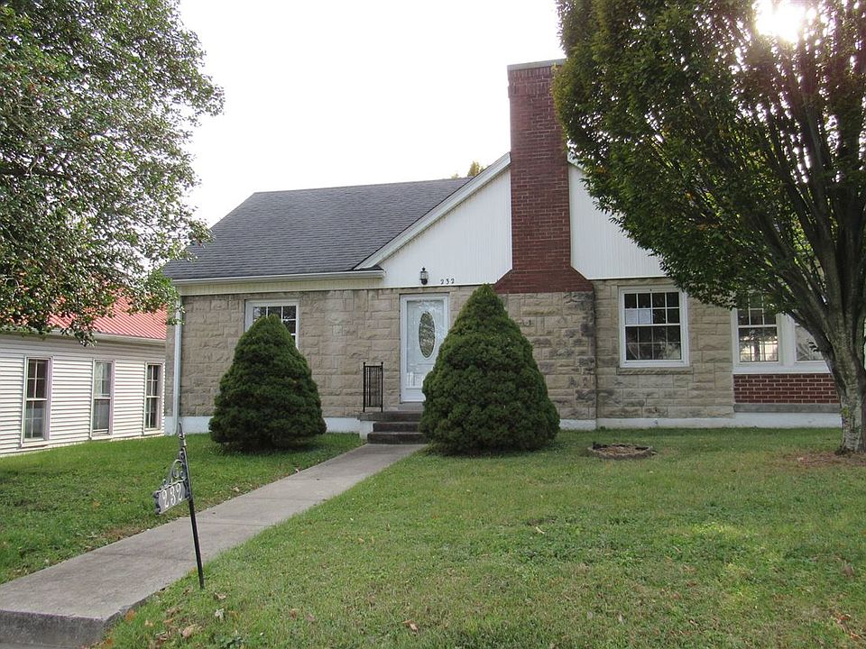 Ranch home on corner lot located in downtown Elizabethtown. Home features front porch and 2 car detached garage. Interior features 2 bedrooms, 1 bathroom, sun room, living room with fireplace, kitchen, dining room and unfinished basement. Property Sold AS IS with no warranty expressed, written or implied. Buyer to verify all information including, but not limited to square footage, lot size, foundations, utilities, zoning and intended uses.