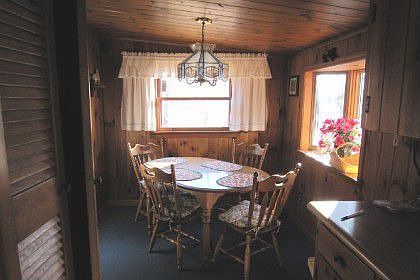 And enjoy this home w/direct access to Trail #4 for snowmobiling or deeded lake rights to 1st Lake. Knotty pine liv/din/kit w/fireplace, 2 bdrms, full bath. Two stall garage plus insulated/heated shop & 2nd flr bonus rm. $185,000.