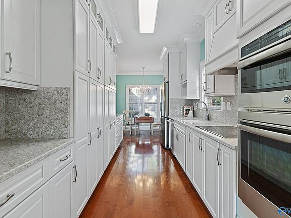 - Features: Built-in Features, Crown Molding, Eat-in Kitchen, Granite Counters, Wood Floor
