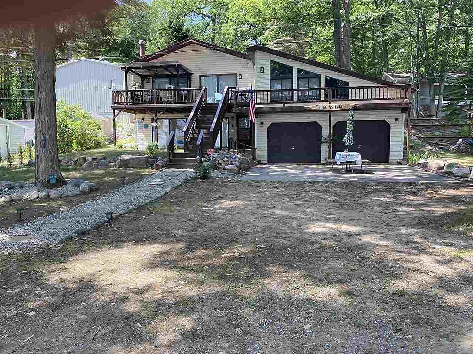 Higgins Lakefront w/spectacular sunrise views. Beautiful energy efficient home in move in condition and sparkles like new! This home has 72' of frontage, large open living space w/ a wall of windows overlooking the lake and a walk out deck w/pergola. A very large bonus room w/ wall of windows also overlooking the lake and easily converted to a master bedroom. Lower level walkout is completely finished w/2 large bedrooms , bath and living space.