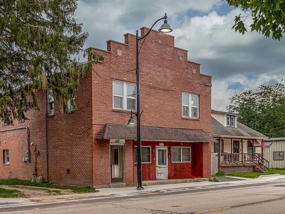 Fixer-upper opportunity in Hanover, IL on State Route 84. Over the last 150 years, this property has served the town as a grocery store, butcher, and bakery! The two-story historic brick building offers over 2,500 sq. ft as well as a 460 sq. ft. brick garage and off-street parking in the driveway. An apartment was built between the brick structures that is in disrepair and needs to be torn down. Also included in this sale, is an adjoined parcel consisting of an additional 3.5 lots (Parcel ID 09-001-101-00) with a yard and mature fruit trees that extends all the way to Fillmore Street with city utilities available. The upper level of the brick building is in need of TLC and is set up as a 3 bed, 1 bath apartment with tall ceilings and most of the original wood floors, doors, and built-in cabinets. There are some newer windows on the upper level as well as attic storage. The lower level needs the most work and could be finished into a second apartment or commercial use with village approval. There is a portion of the lower level that is sectioned off with a separate front entrance creating the potential for a live/work setup. Partial unfinished basement houses the water heater. The property was converted to gas furnace heat 15-20 years ago and the electric baseboards are still in place, but not in use. Buyers are welcome to inspect the property at their cost, but please note that the property is being sold AS-IS and the Seller will not be making any repairs. At just $28 per square foot, it may just be cheaper to renovate historic than to build right now.